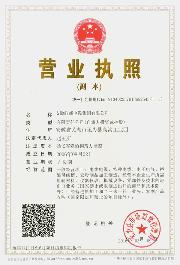 安徽虹都電纜集團(tuán)公司始終堅(jiān)持“科技求發(fā)展、人才促管理”的發(fā)展方針和“科技創(chuàng)新、以質(zhì)取勝,”的質(zhì)量方針,秉承“誠(chéng)實(shí)守信、互惠互利”的經(jīng)營(yíng)理念。將繼續(xù)以?xún)?yōu)良的產(chǎn)品、合理的價(jià)格、完善的服務(wù)回報(bào)廣大新老客戶(hù),愿與社會(huì)各界朋友攜手合作,共創(chuàng)輝煌。