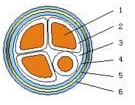 1、導體 2、PVC(XLPE)絕緣 3、包帶 4、PVC內護套 5、金屬屏蔽 6、PVC外護套